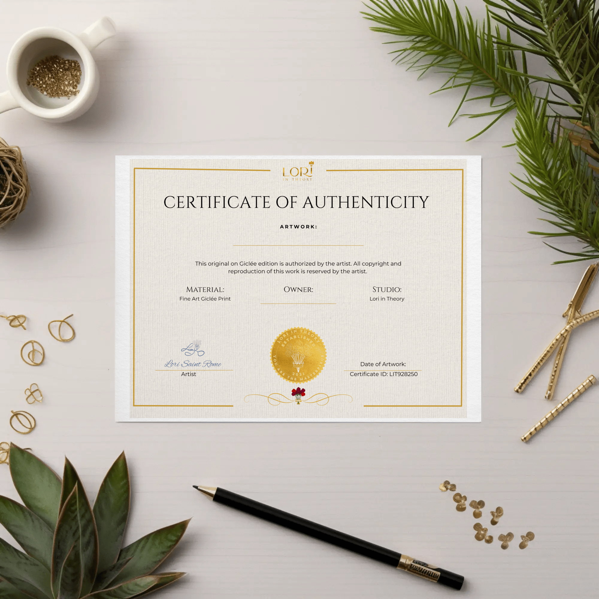 Lori in Theory's giclée fine art prints are meticulously crafted using cutting-edge inkjet technology and museum-grade materials, ensuring unparalleled detail, color accuracy, and longevity. Standard prints simply can't match the level of exclusivity and quality that our giclée prints offer. You can read about the difference between giclée prints and standard prints here.